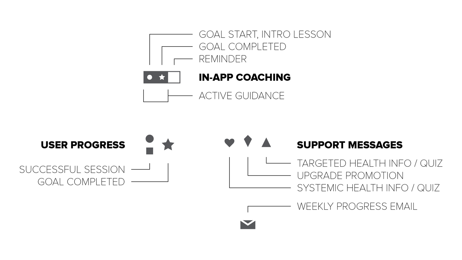 The bulk of my effort for this project was spent working with the Sonicare SMEs on defining the habit-loops and a steps-to-mastery coaching model, and determining how to integrate those into both the app experience and the connected toothbrush firmware.